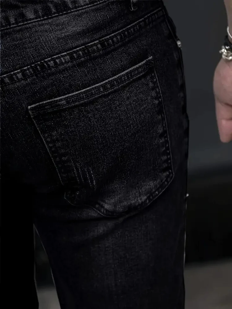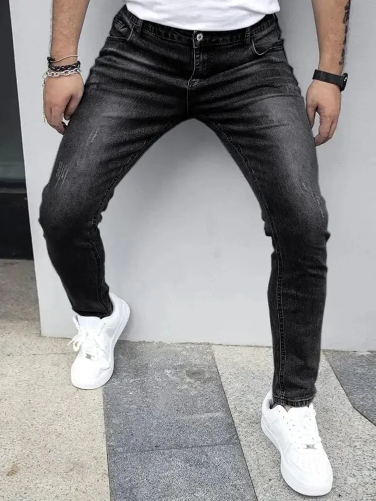 بنطلون جينز رجالي ضيق مغسول مناسب لأربعة فصول، موديل 2025، بقصة ضيقة، أزرق فاتح، رمادي، أسود، كاجوال