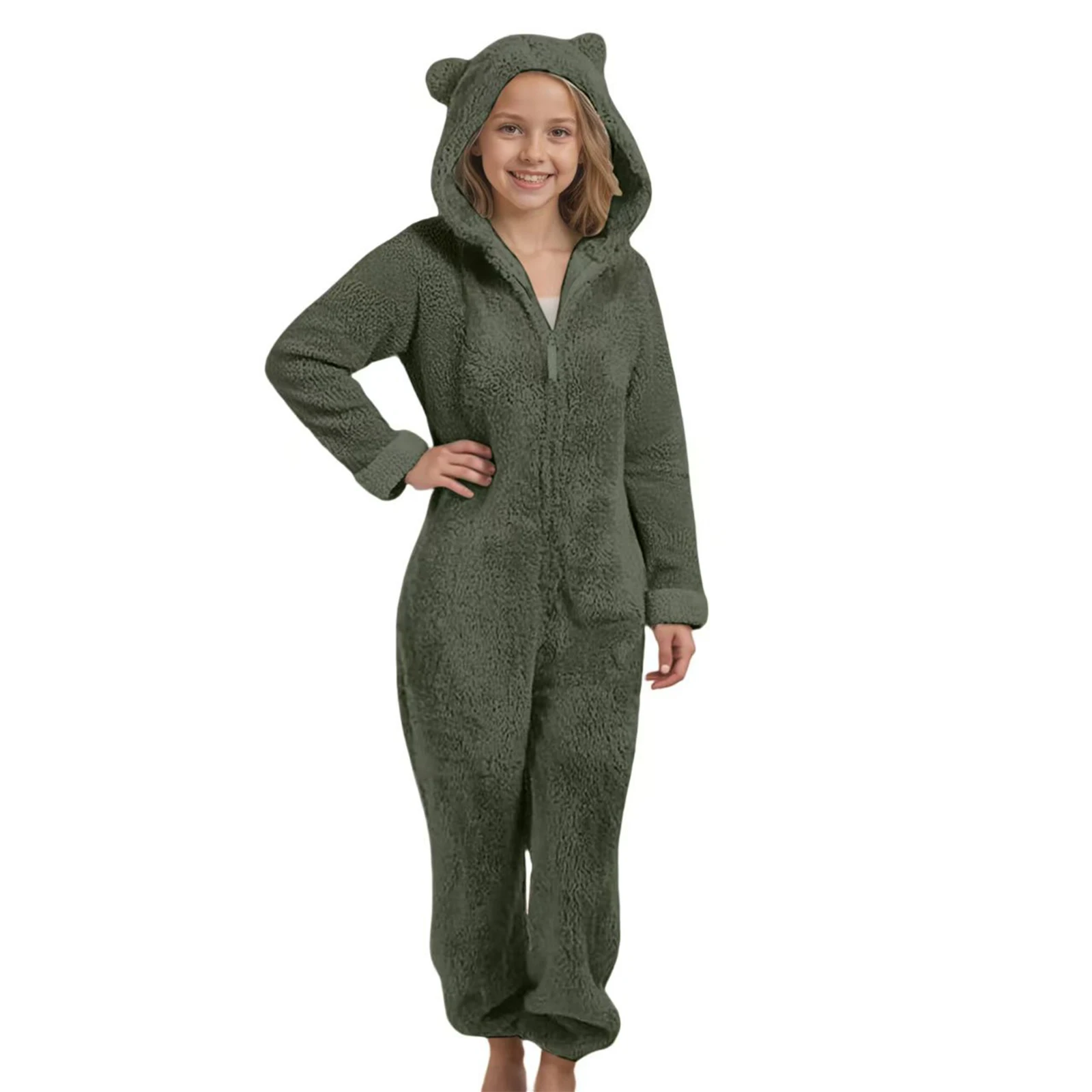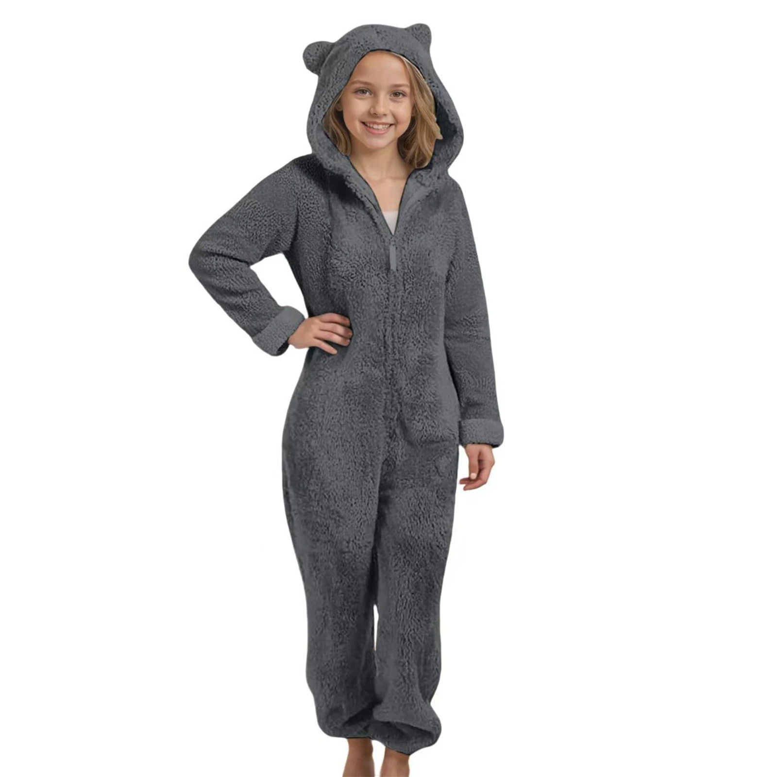 بيجامات أطفال للخريف والشتاء بغطاء رأس سميك للأولاد والبنات بأكمام طويلة وسحاب وقطيفة ودافئة للمنزل