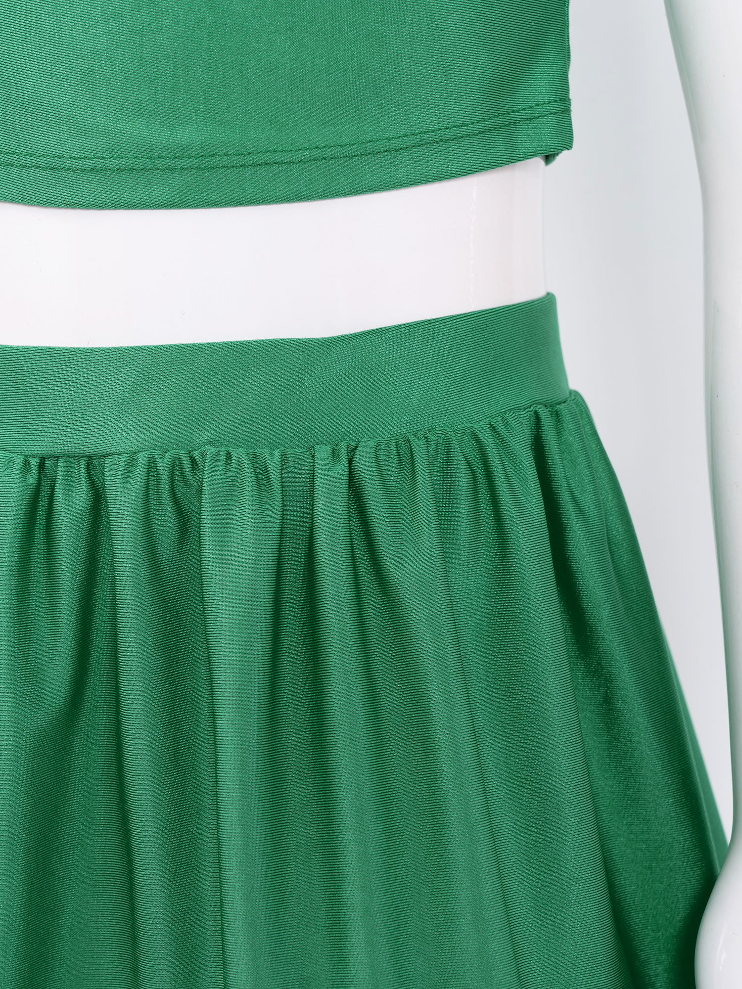 تنورة مكشكشة مع حافة مخططة معدنية، وحزام خصر مطاطي يمكن تمديده لضمان أقصى قدر من الراحة للخصر.