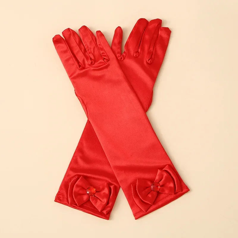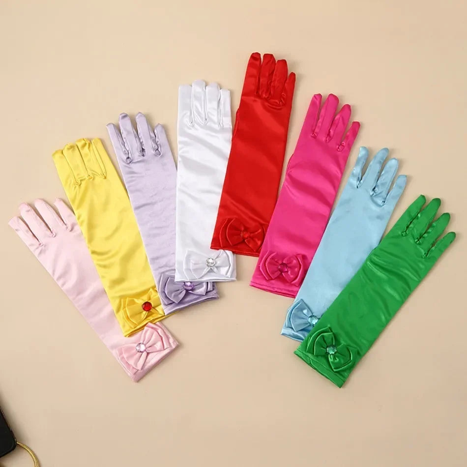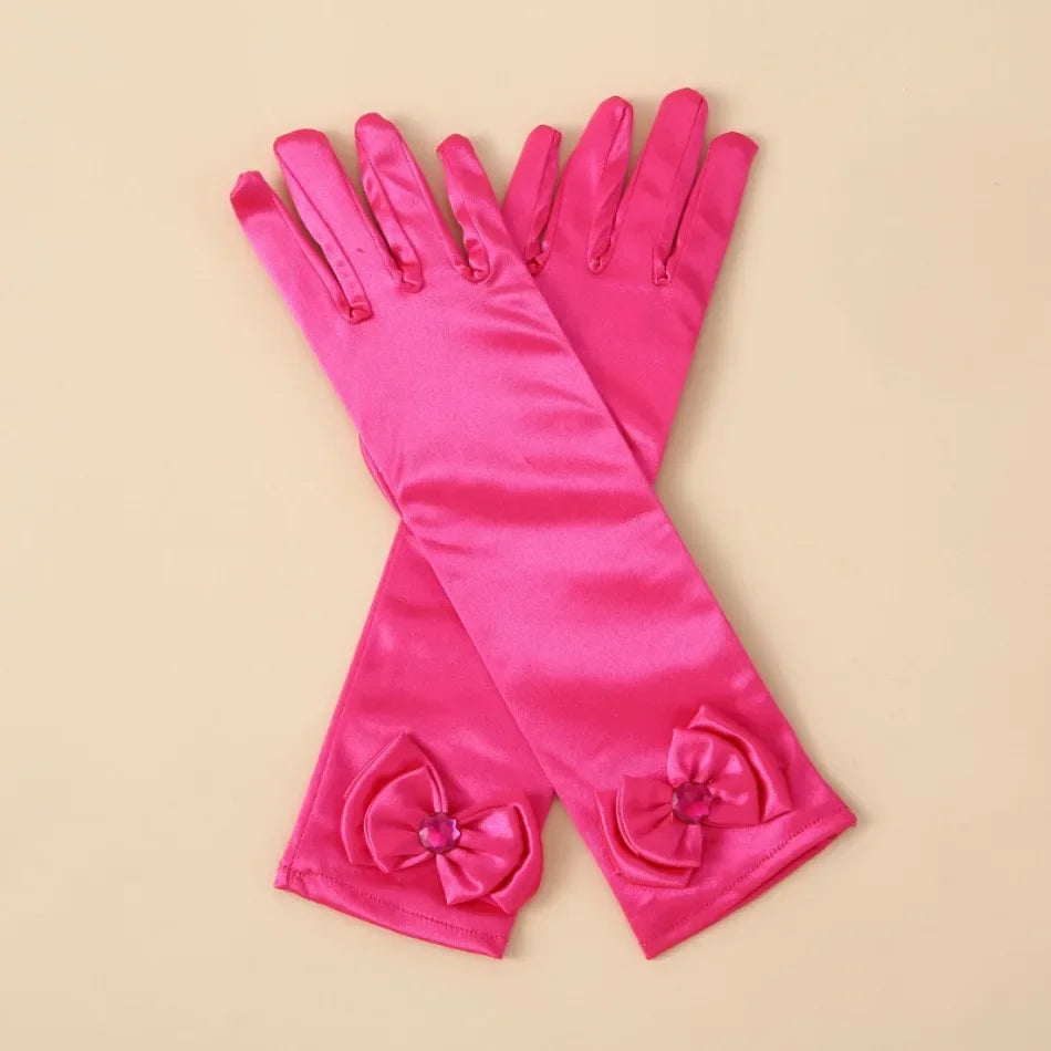 قفازات طويلة للأطفال الأميرة فتاة عيد ميلاد حفل زفاف إلسا آنا إكسسوارات سندريلا بيل صوفيا مجموعة 11 لونًا للأصابع الطويلة