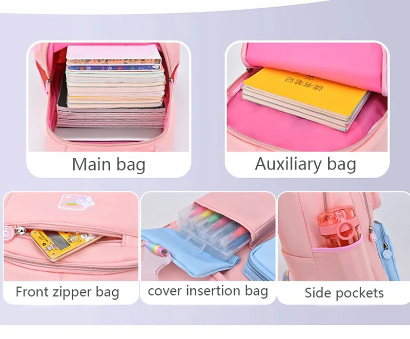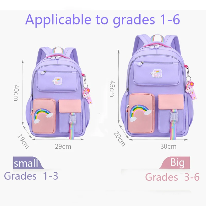 حقيبة ظهر للأطفال بألوان الماكارون، حقيبة كتب مدرسية للبنات المراهقات، حقيبة ظهر مدرسية لطيفة متعددة الجيوب مع قلادة قوس قزح