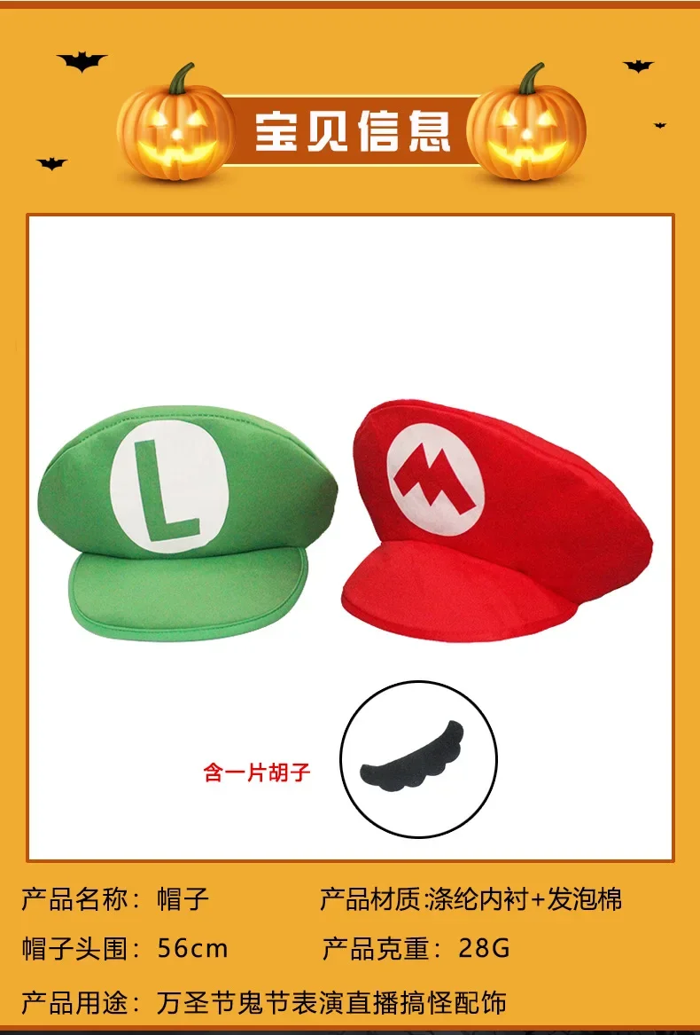 قبعة كلاسيكية من ماريو برذرز لويجي أنيميشن كوسبلاي لعبة شخصية أنمي زي الهالوين للجنسين أطفال بالغين قبعة بيسبول هدية للحفلات
