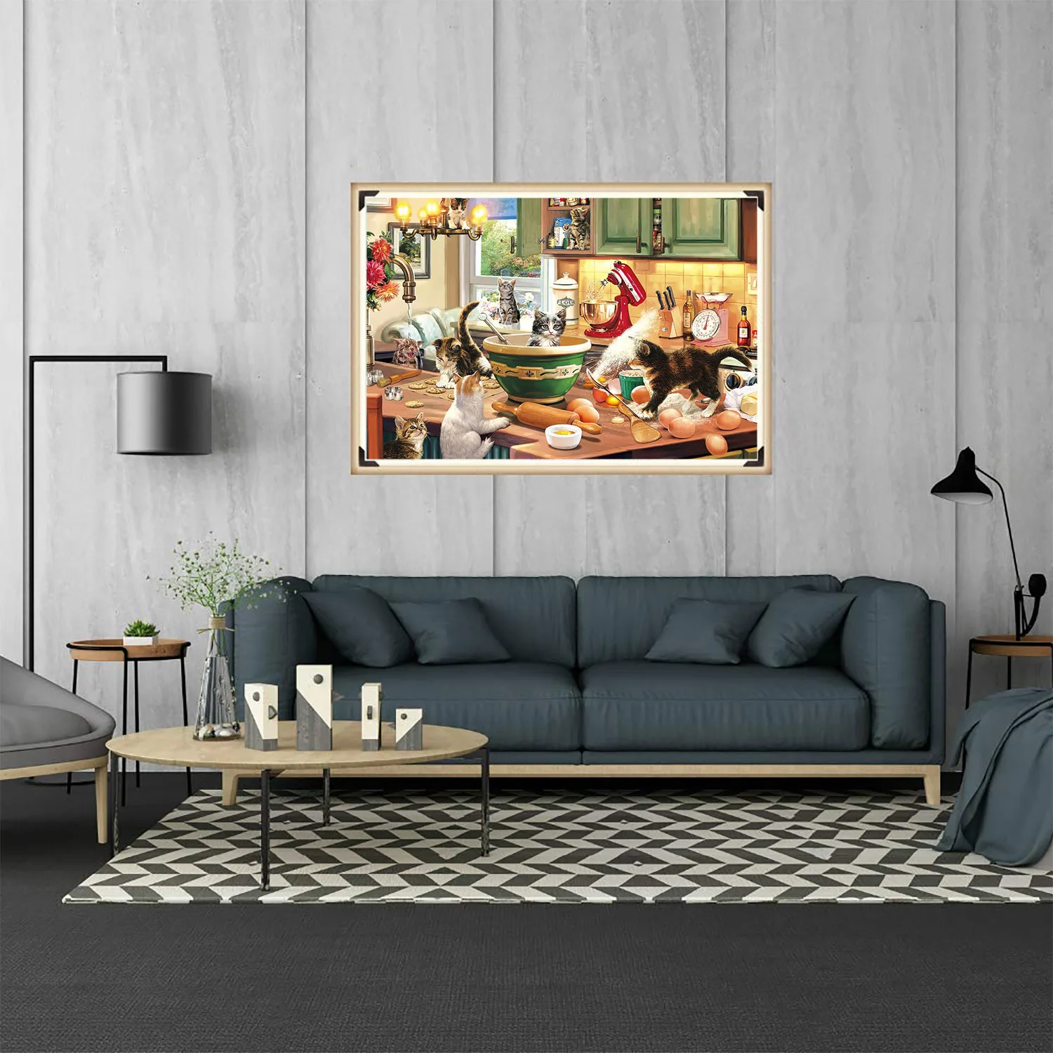 1000 Pieces Kitchen Cat Jigsaw Puzzles for Adults Home Decor Games Family Fun Floor Puzzles Educational Toys for Kids