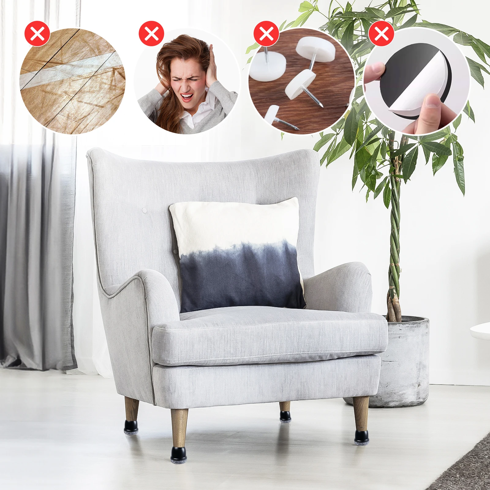 1. New Design to Better Protect your Floors: We’ve upgraded the Chair Leg Floor Protectors that fit over your furniture legs to prevent scratching and reduce noise, effectively protect your hardwood and tile floors! Keep your floors looking beautiful!