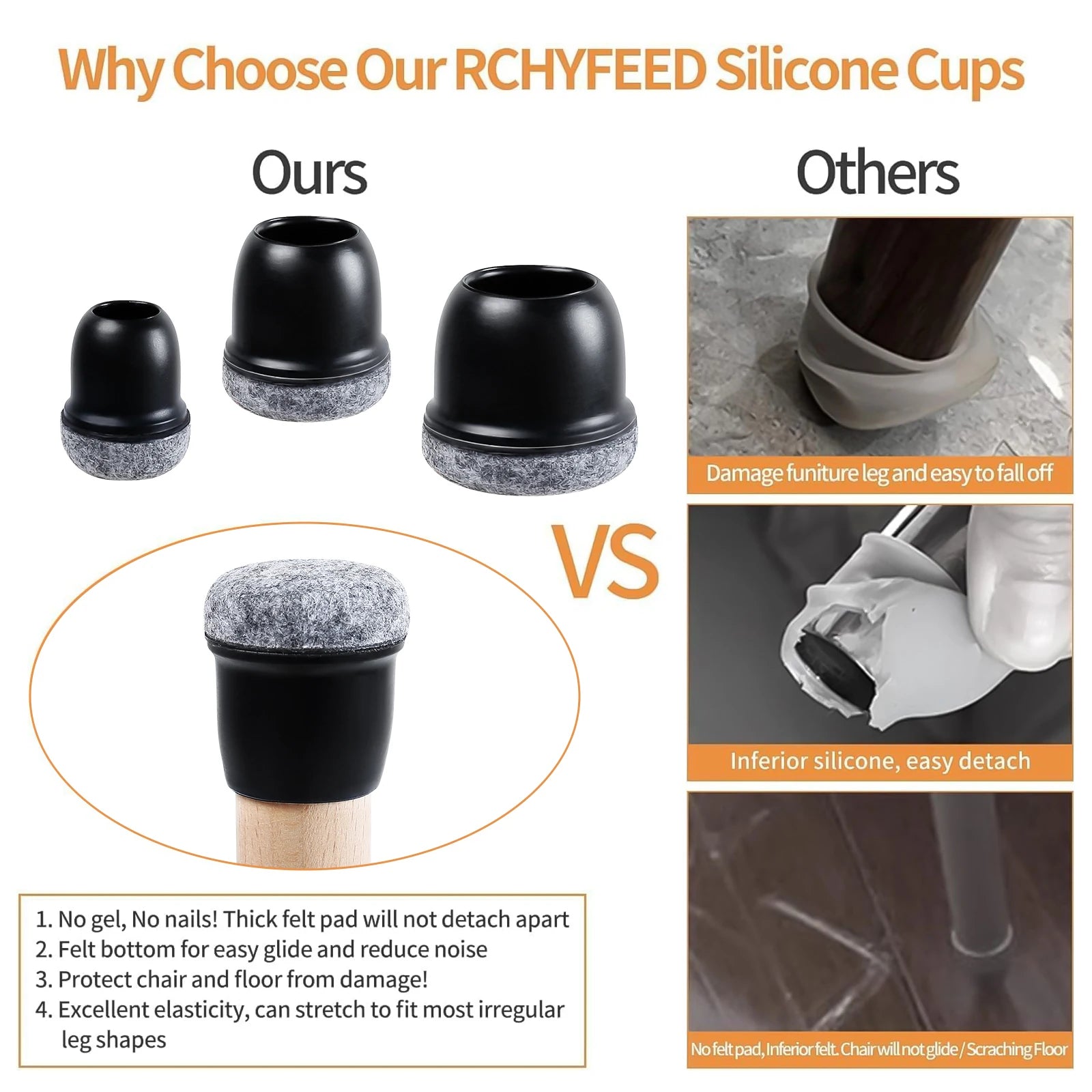 16PCS Chair Leg Protectors Anti- Slip Silicone 360°Felt Pad Bottom Wrapped Thickening Furniture Leg Cover for Hardwood Floors