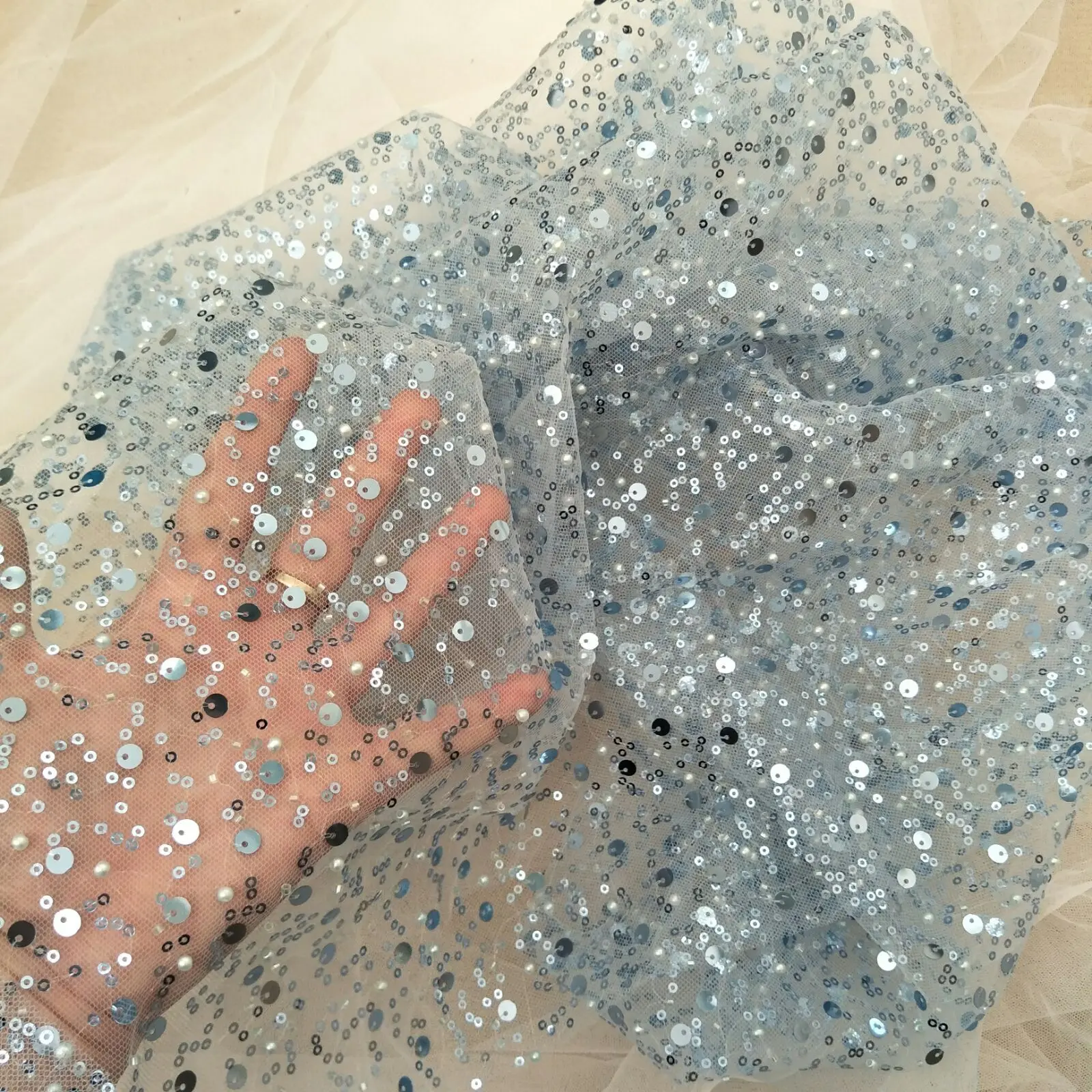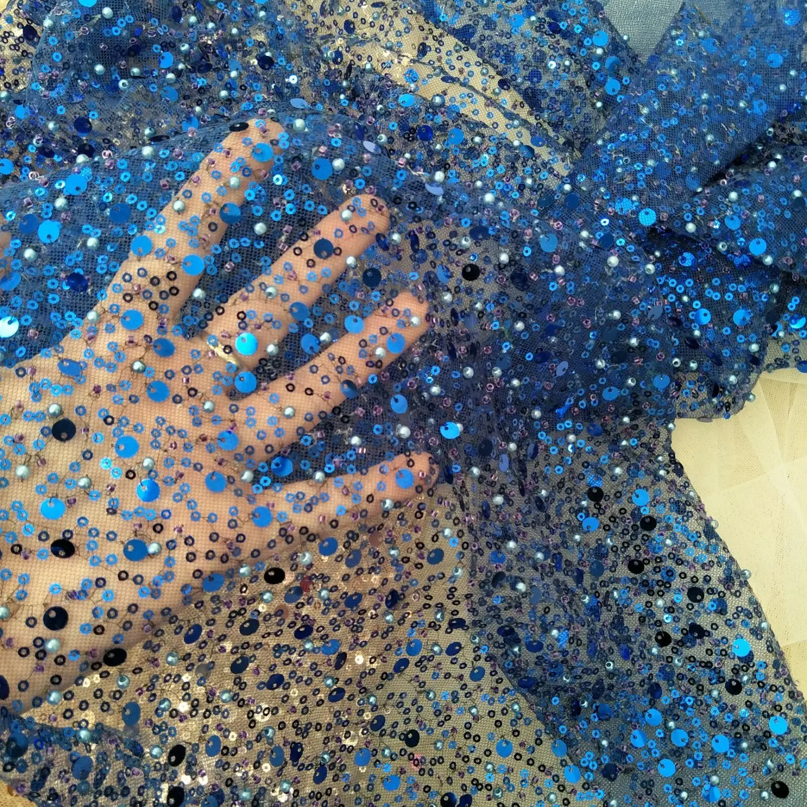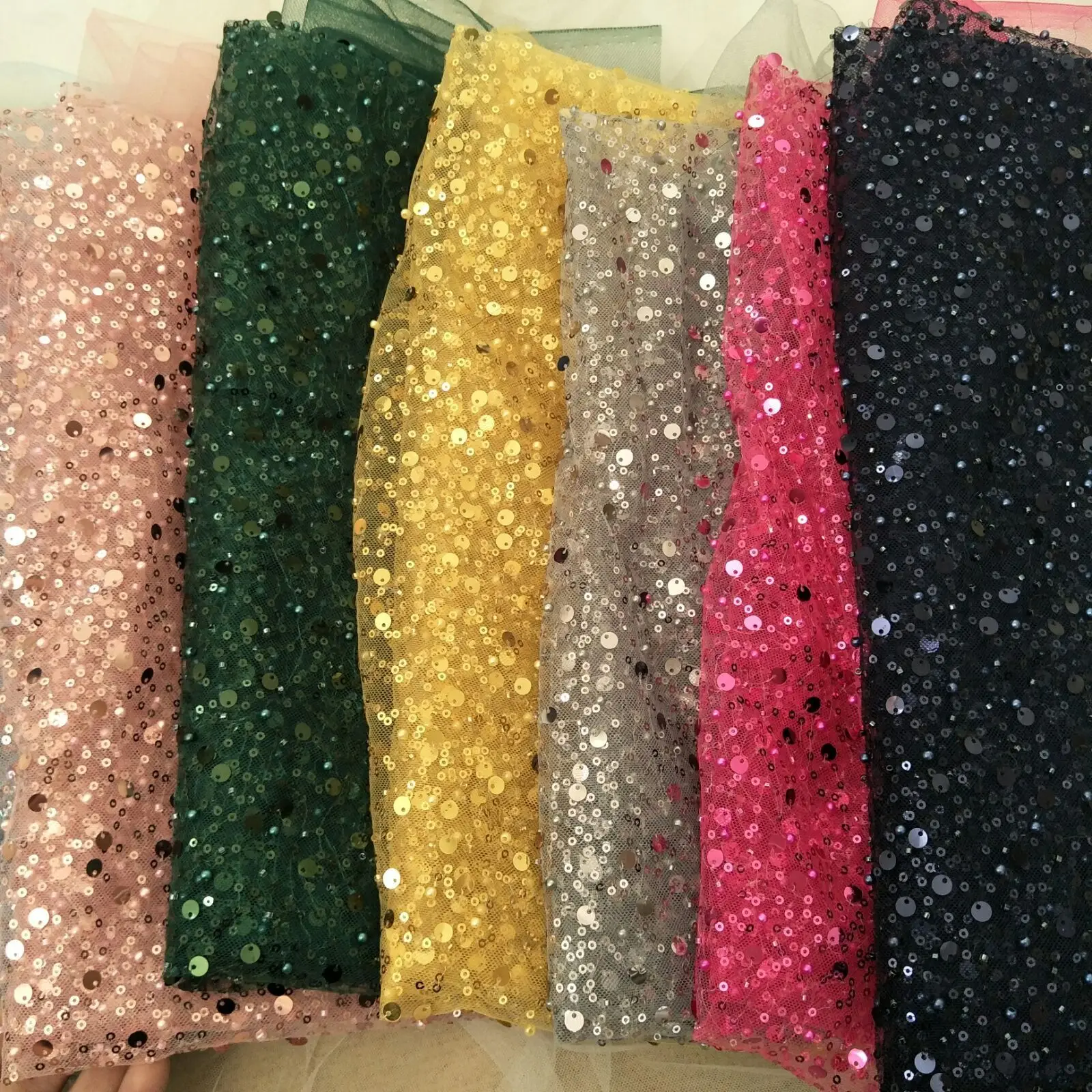 20 Colors beauty wedding dress beading fashion dress lace fabric with pearls 130cm width bridal lace fabric sell by yard