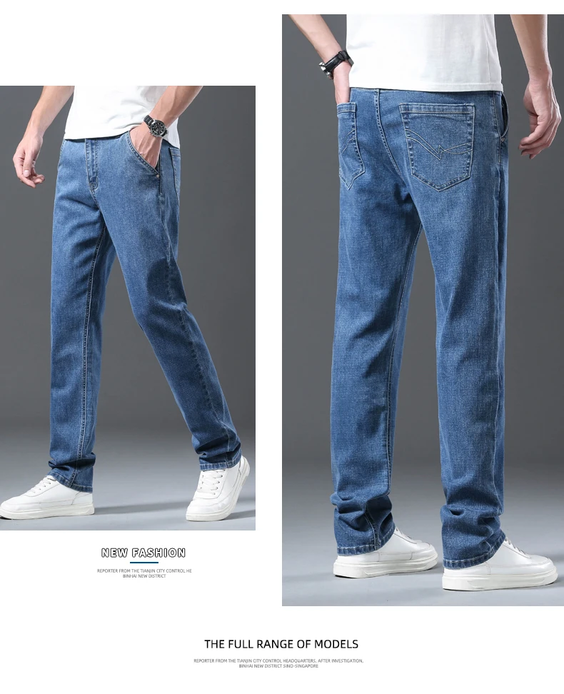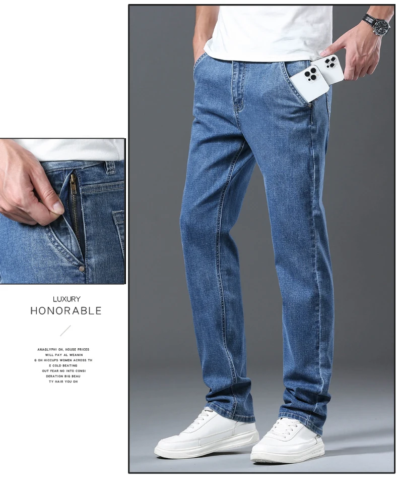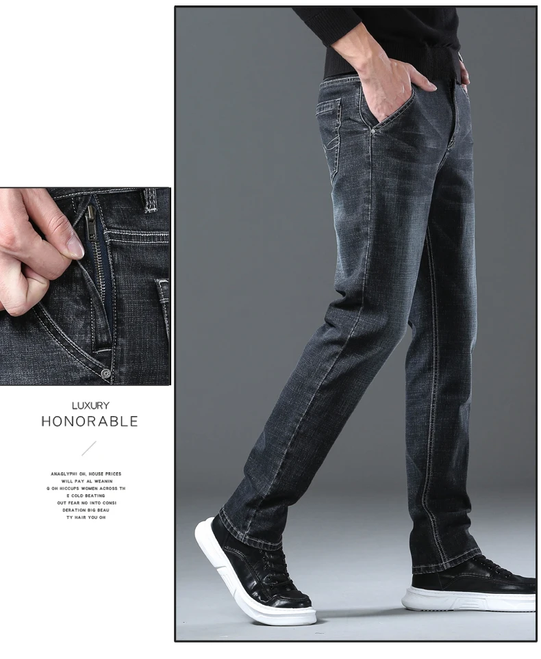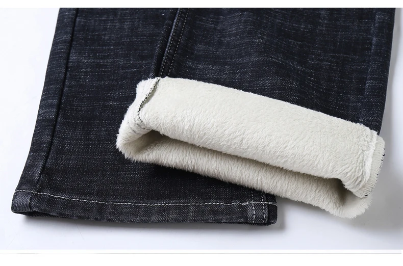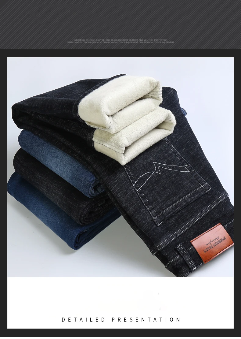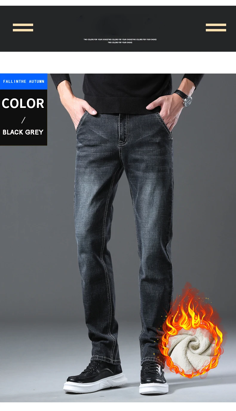 2024 New Men's Clothing Casual Jeans Winter New Fleece Pants Thick Warm Fashion Straight Fit Male Denim Trousers