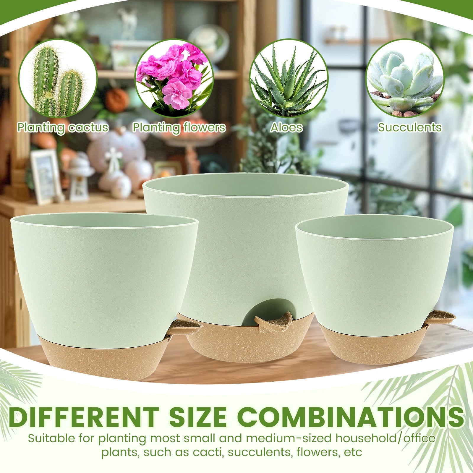 3Pcs Self Watering Flowerpot Plastic Planter with Drainage Holes 8/9/10 Inch Hanging Succulent Planter Pot Gardening Decoration