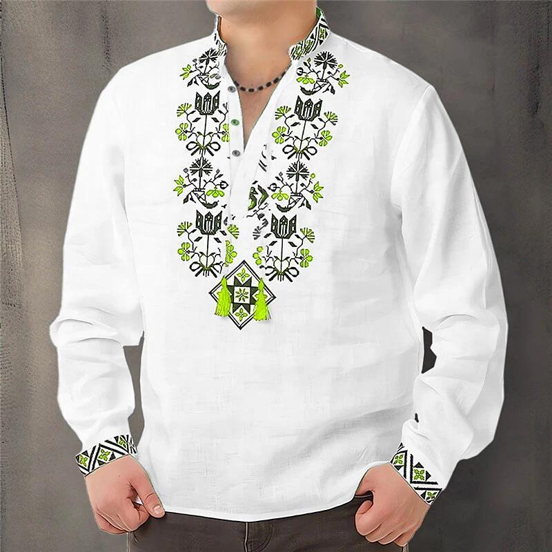 Cardigan Button men's Shirt Casual Simple Comfortable Soft Material New Floral HD Pattern Personality Cardigan Shirt Long Sleeve