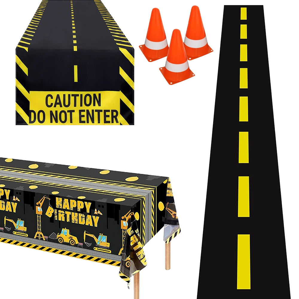 construction truck party tablecloth table runner Engineering excavator theme table cover boy construction birthday party decor