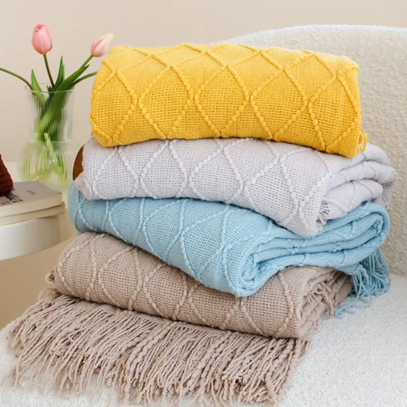 Throw Blankets are made of High Quality acrylic,The material doesn't shed or wrinkled, strong anti-sunlight and excellent light fastnessand.Our throw blanket is as soft and warm as wool blankets.Suitable for multiple scenarios,the ingredients are sufficient,We just want to make a high-quality blanket for you!