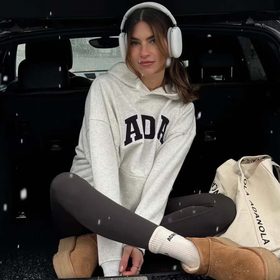 The ADANOLA hoodie features a loose fit design, offering comfort and style for casual outings.