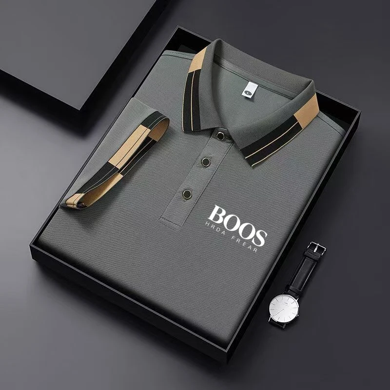 Men'S New Embroidered Short Sleeved Striped Grid Polo Shirt, Business Casual Fashionable Breathable Clothing, Youthful Fashion,