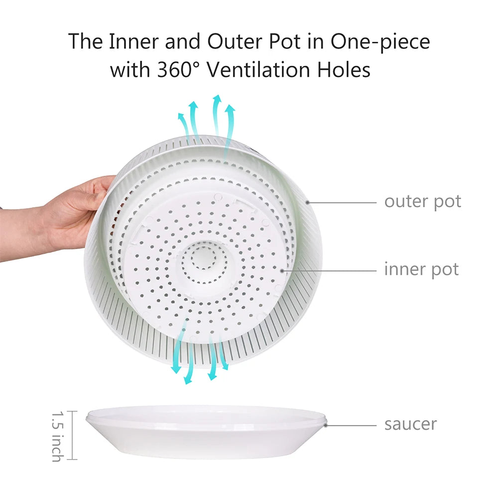 A: This item of the pot is designed with 360° air holes , the root of the plants will breath freely,which make the plants root grow well.