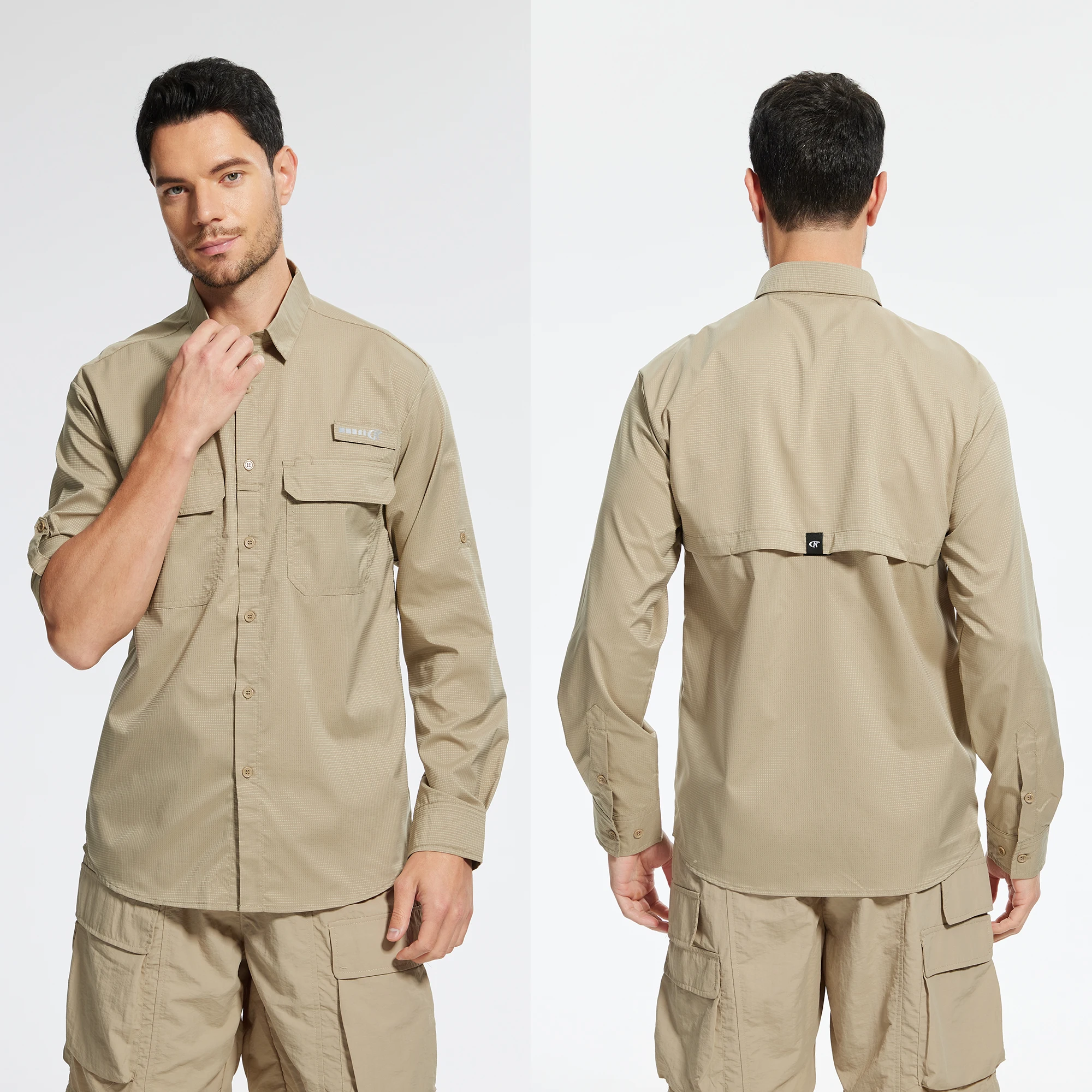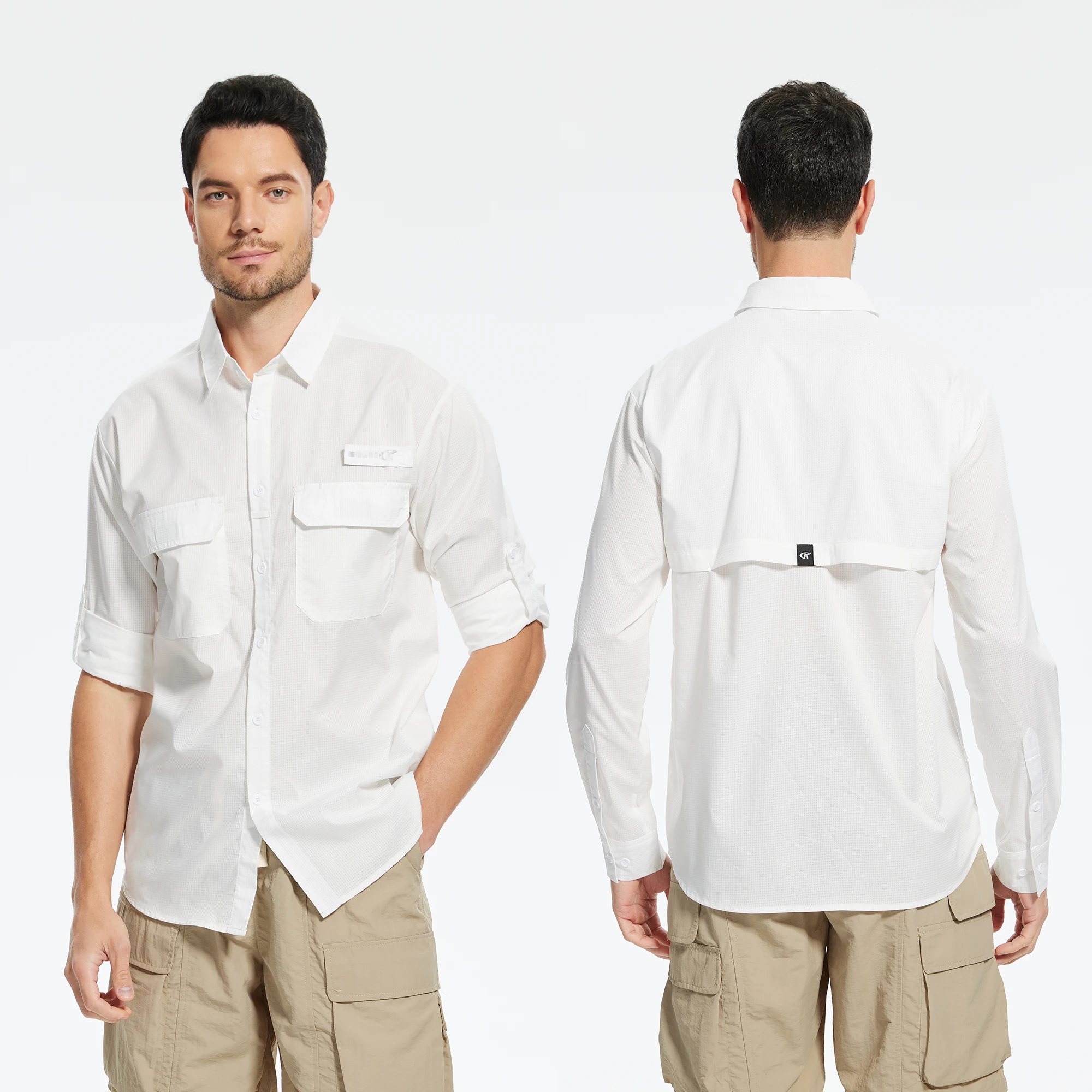 Summer Men's UPF 50+ Casual Long Sleeve Fishing Shirts, Lightweight Tactical Button Down Shirt with Breathable Back Mesh