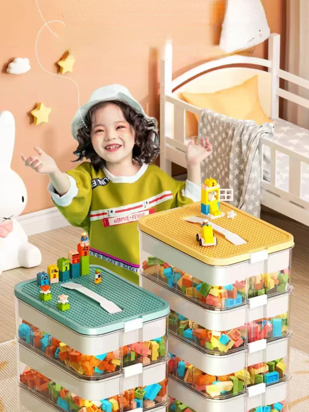 Transparent dust-proof and moisture-proof plastic storage box, classified storage, stackable building block storage box.
